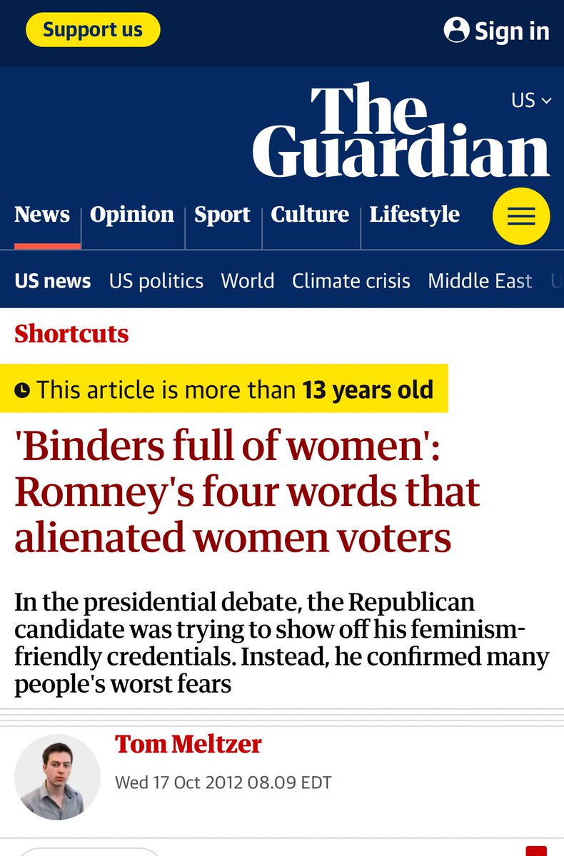 Next let’s turn to Mitt Romney’s 2012 presidential run. Accused of sexist treatment towards women, Romney offered the inelegant response that he had “binders full of women” (by which he met their resumes) that he was considering hiring.
