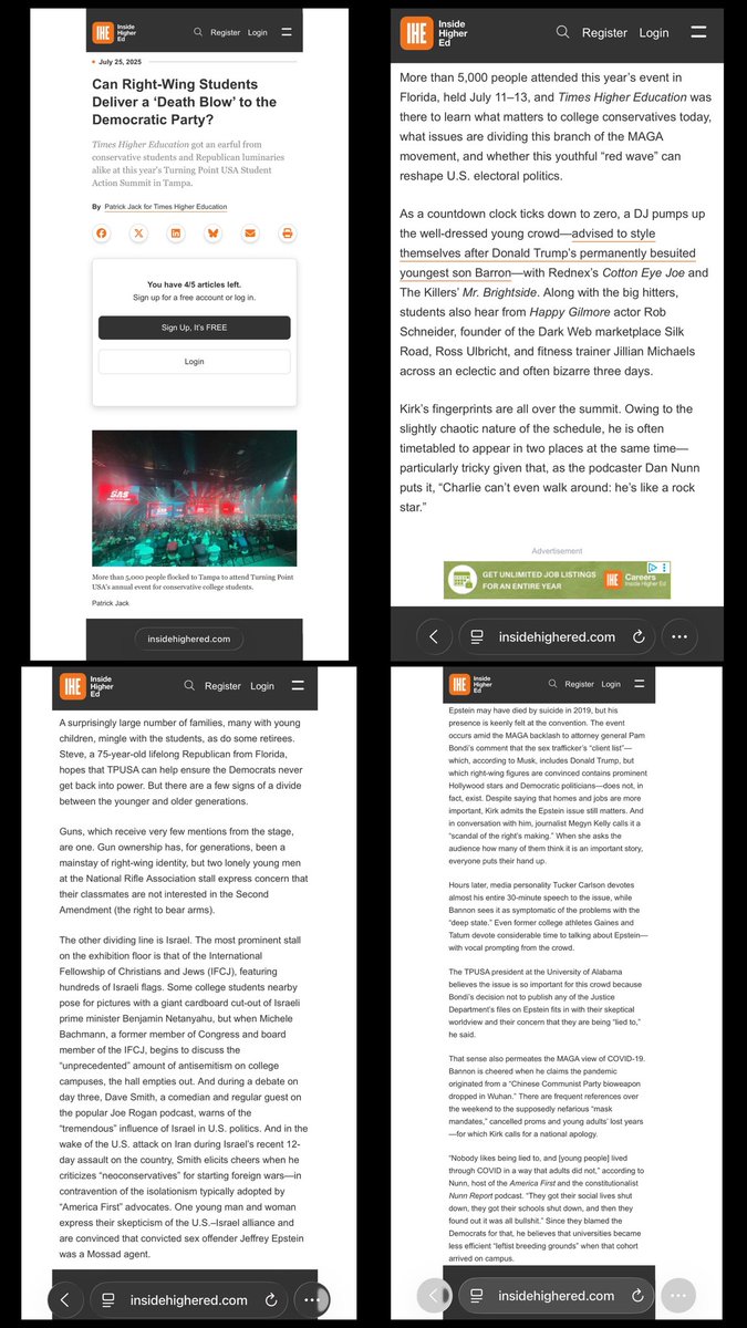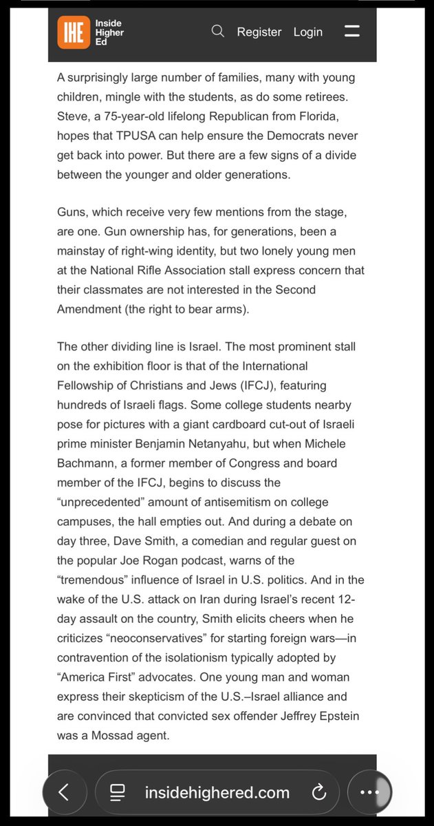 ALSO, Notice™️… in JULY 2025, at the TPUSA SUMMIT, halls ‘EMPTIED OUT’ when MICHELLE BACHMANN mentions ‘UNPRECEDENTED ANTISEMITISM on COLLEGE CAMPUSES’.