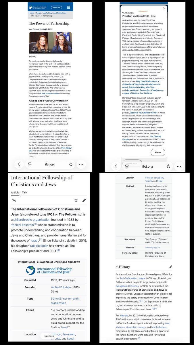*IFCJ PRES & CEO is his DAUGHTER, YAEL ECKSTEIN.
