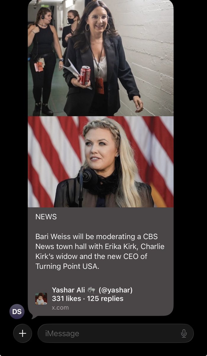 BARI WEISS (UJA/Mossad) moderating w/ERIKA KIRK & TPUSA’s new CEO makes sense now.🤣