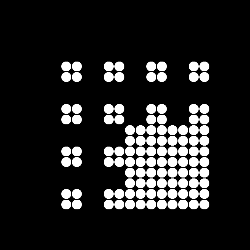 Control the size and color of a 16x16 dot matrix with a single JavaScript function. The input is limited to 32 characters – but no limits to your creativity!