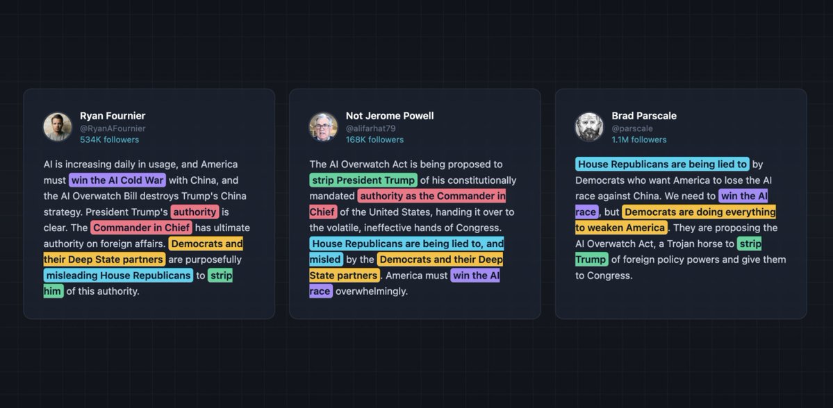 A dozen right-wing influencers suddenly became passionate about semiconductor export policy, posting nearly identical (and often false) attacks over a 27-hour period on a bill most people have never heard of.