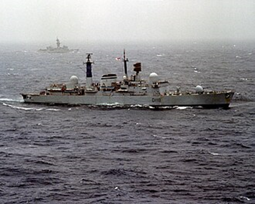 Eskadra brytyjska, która zabezpieczała odbijanie Falklandów z rąk ludzi planujących przerobić ją na Peron, była wykwitem ówczesnego etapu zimnej wojny – okręty zaprojektowane w l. 60 były przeznaczone bardziej na walkę z Sowietami, stąd też duże pociski przeciwlotnicze dalekiego zasięgu do zwalczania ciężkich bombowców, które w praktyce wojny z Argentyną okazały się mało skuteczne, bo te konusy latały nisko i próbowały wsadzać nogę w każde drzwi, których nieopatrznie nie domknięto. Z braku lepszego pomysłu, a też i z czytej konieczności, admirał John S. Woodward, pozbawiony przez poprzednie rządy lejburzystowskie samolotów wczesnego ostrzegania i normalnego lotnictwa pokładowego, wysunął przed linię floty kilka niszczycieli – w tym HMS Sheffield – które miały wykrywać radarami ewentualne naloty od strony argentyńskiej, w razie czego podnieść ogólny raban i wziąć pierwszy atak na klatę.