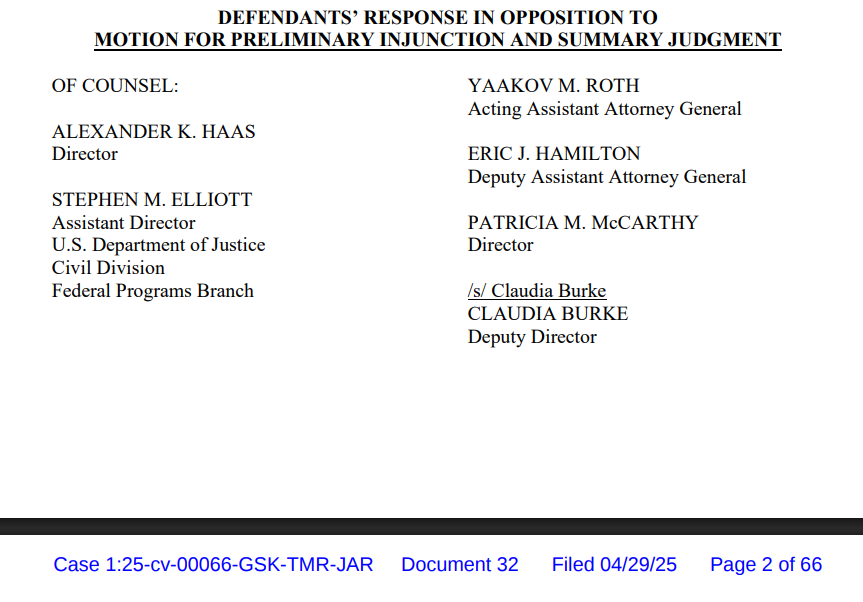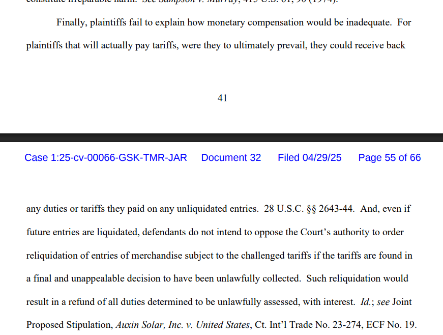 Here's the Trump DOJ's initial response on April 29, 2025, admitting that if they lost an unappealable decision, the government would refund the illegal tariffs with interest.