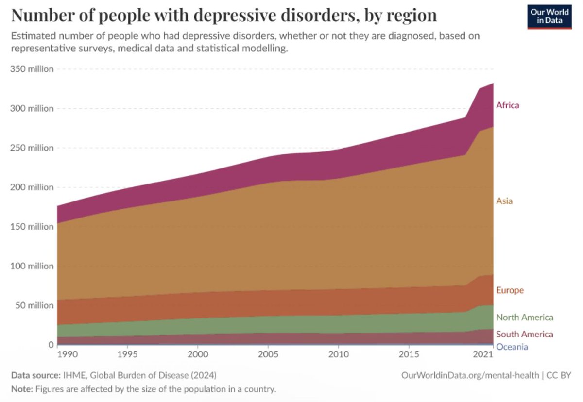 Around 5–5.7% of adults worldwide experience depressive disorders at any given time. >280 million people!