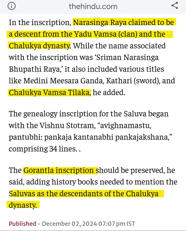 Saluvas were descendants of Kalyani Chalukyas. They claimed to belong to Chalukya vamsa in the Gorantla inscription. Interestingly even the Aravidu line of Vijayanagar was descended from the Chalukyas.!