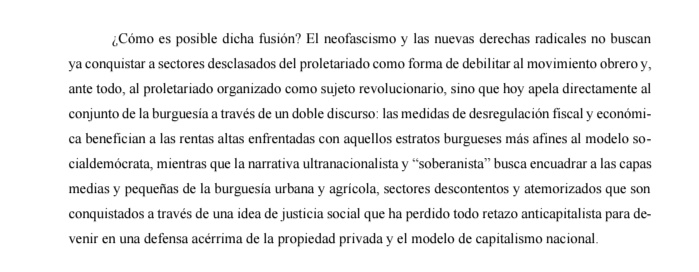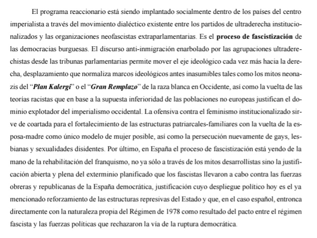 El proceso de fascistización opera bajo el movimiento en el cual grandes partidos de ultraderecha institucionalizados como VOX o Rassemblement