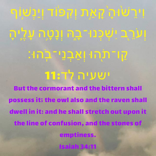 But the pelican [j]and the hedgehog shall possess it, and the great owl, and the raven shall dwell in it, and he shall stretch out upon it the line of [k]vanity, and the stones of emptiness