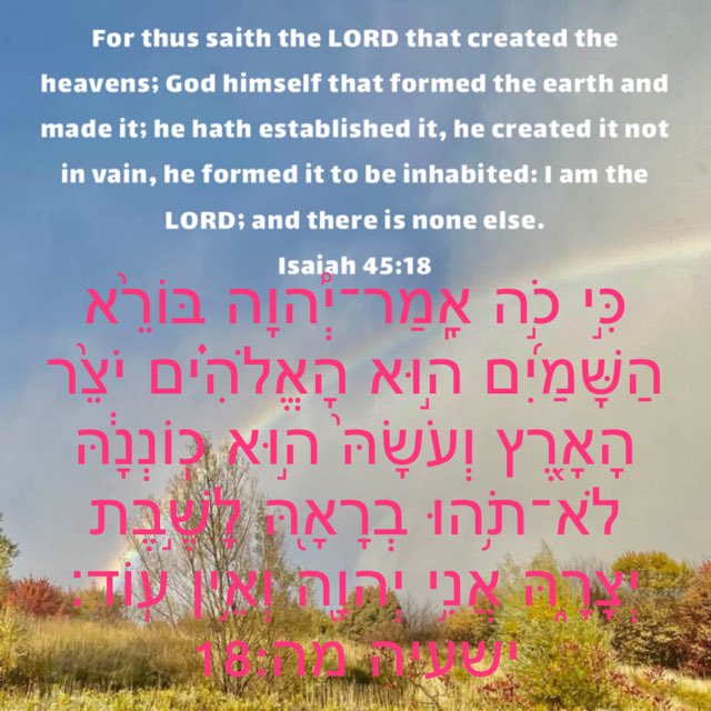 For this saith the Lord (that created heaven, God himself that formed the earth, and made it: he that prepared it, he created it not in vain: he formed it to be [t]inhabited) I am the Lord, and there is none other
