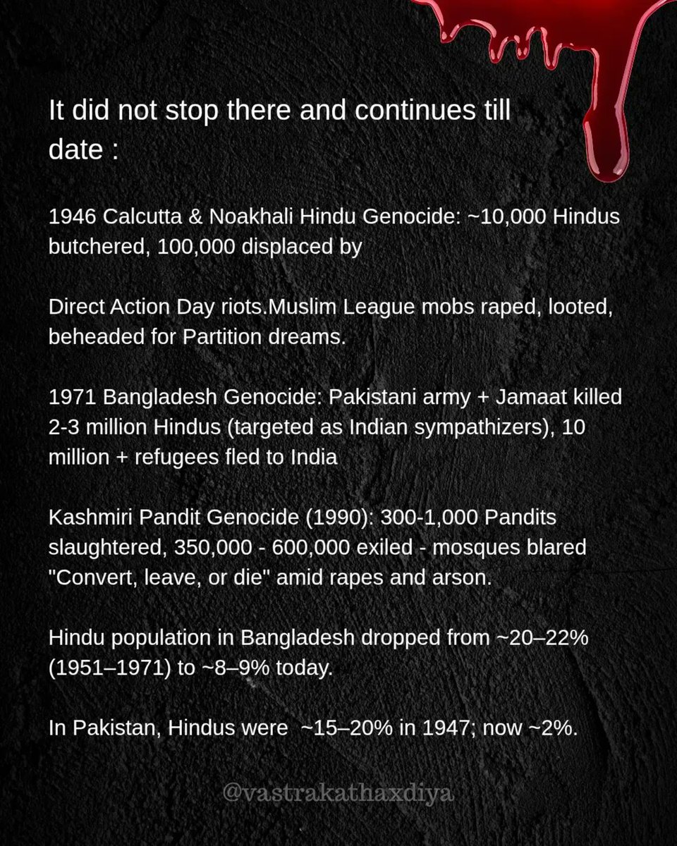 A thread on hindu genoc!de and how hundreds of hindu families were displaced, fleeing across rivers to safety, while over lakhs of homes and shops were vandalised or burned, temples desecrated, and women subjected to dehumanising treatment, including stripping and burning of their clothes all simply for being Hindu.