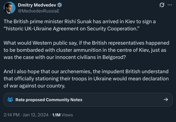 To highlight Russia's willingness to negotiate and because we tend to lose track of facts and statements, I've compiled a list of all threats and predictions made over the past 2 years by Dmitry Medvedev, former president and current deputy chair of Russia's Security Council.🧵