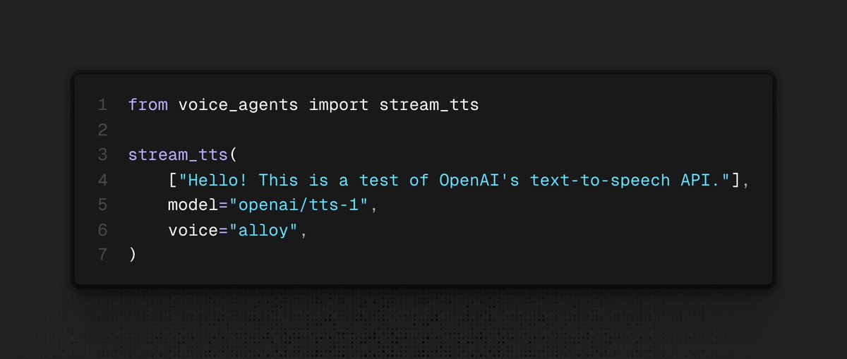 Switch between providers effortlessly with a unified API. Whether you need OpenAI's natural voices, ElevenLabs' expressive options, or Groq's fast inference, Voice-Agents handles it all with consistent interfaces.