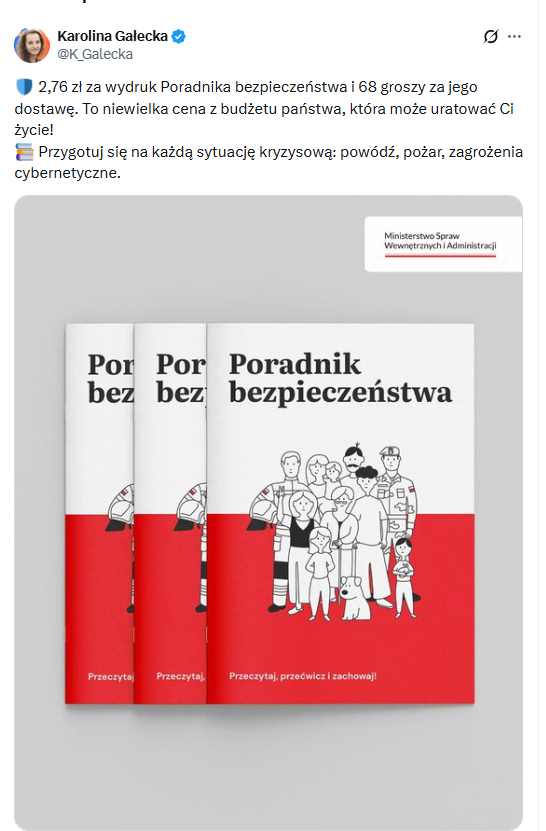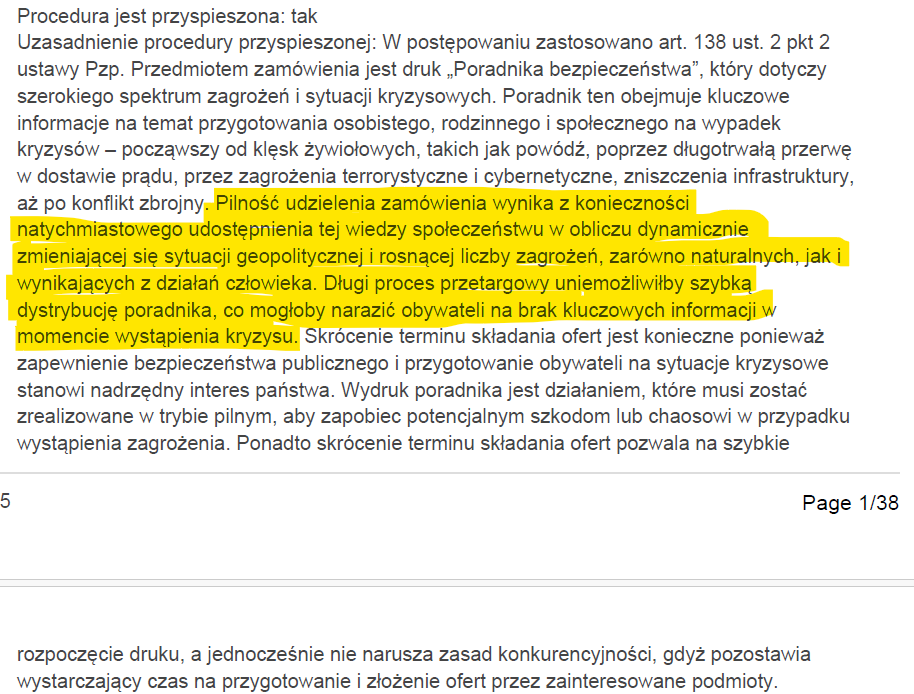 Poruszony nie tylko samą koncepcją drukowania poradnika bezpieczeństwa, ale także kwotą na to wydaną z budżetu państwa (44,9 milionów zł) i wspaniałą polszczyzną pani rzecznik @MSWiA_GOV_PL postanowiłem się nieco przyjrzeć temu przetargowi. Jedziemy z 🧵1/7.