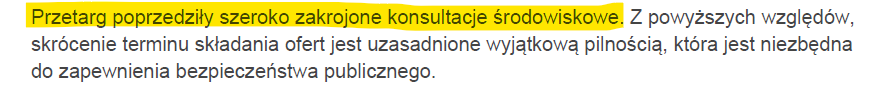 Ale czy czasem nie wiedział o przetargu i jego warunkach wcześniej? Wszakże co przyznaje zamawiający w ogłoszeniu przetarg poprzedziły... "szeroko zakrojone konsultacje środowiskowe"