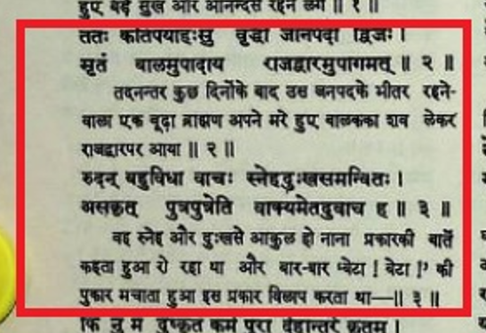An old Brahmin brings the corpse of his son to shri Ram’s court and cries: