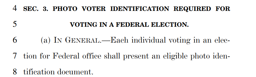 Usually, "Voter ID" means you show your driver's license or government photo ID at the polls. But the new GOP SAVE America Act requires that ID to show that you are a US citizen. 2/