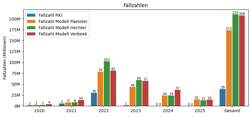 Im Jahr 2025 gab es in Deutschland zwischen 13 und 15 Mio neue COVID-Infektionen. In unserem neuen Paper "Update 2025: Modellierung der COVID-Infektionszahlen in Deutschland (2020-2025)" haben wir nun die Daten für das 6. Jahr der Pandemie ergänzt (Pre-Print).