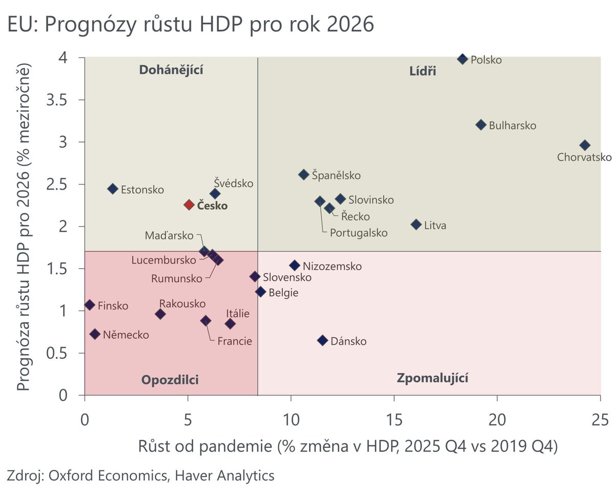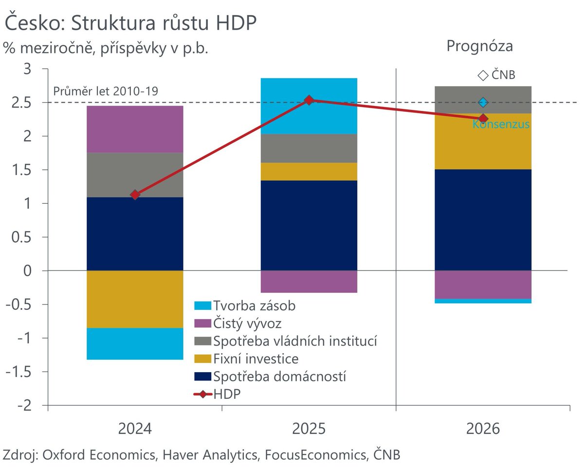 ...a to hned z několika důvodů. To neznamená, že bych pro letošek čekal útlum - naopak, ekonomika nejspíš poroste jako loni (2,5%), což nás zařadí do první třetiny EU, a dál tak budeme odmazávat manko posledních 5 let.