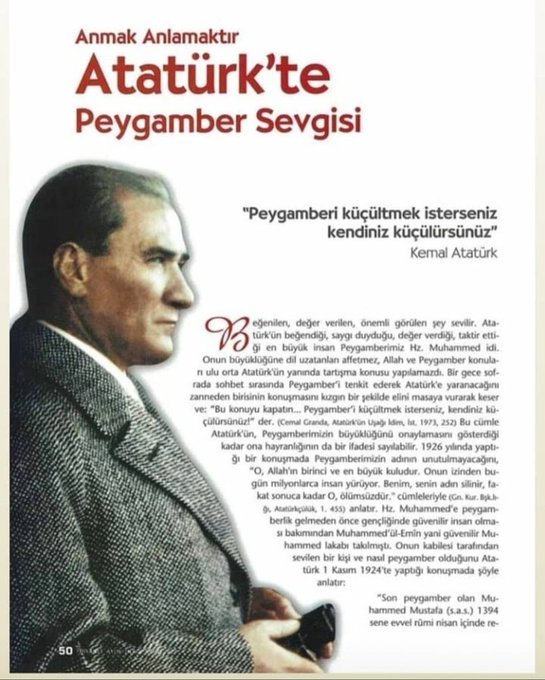 Diyanet Dergisi, Atatürk'ün ölüm yıl dönümünde, "ATATÜRK'ÜN PEYGAMBER SEVGİSİ" başlığı ile bir makale yayınlamış Kasım 2007 sayısında...