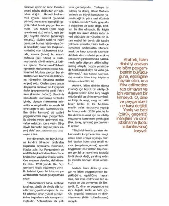 1) Diyanet İşleri Başkanlığı tarafından çıkarılan DiyanetDergisi'nin Kasım ayı sayısında, emekli öğretim üyesi Yrd. Doç.Dr. A. Vehbi Ecer'in, "Atatürk'te Peygamber Sevgisi" başlıklı yazısında, yaşanan olaylarla Atatürk'ün Hz.Muhammed (SAV)'e duyduğu sevgi ve saygı anlatılıyor....