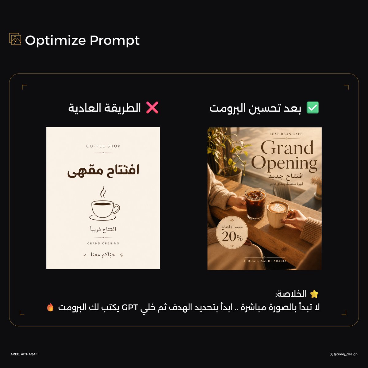 قوله: بصمم بوستر افتتاح كوفي، اسألني عن التفاصيل اللي تحتاجها عشان تكتب لي أنت برومت احترافي.