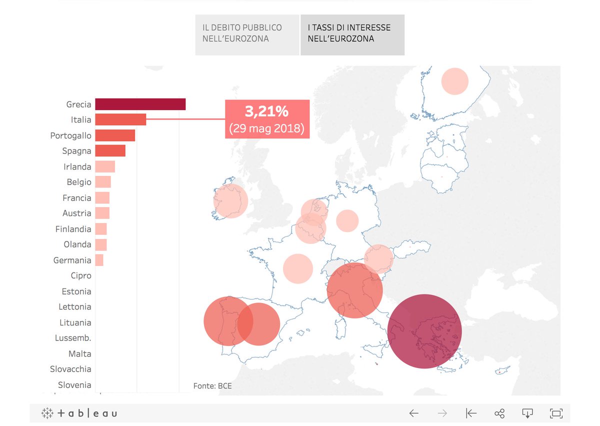 Presumo che questo grafico fosse inteso a provare il punto "19 Paesi, 19 tassi". Peccato che quelli riportati qui siano i tassi sui titoli di Stato a 10 anni, che come spero sappiate non sono stabiliti dalla BCE ma risultato del trading sul mercato 4/