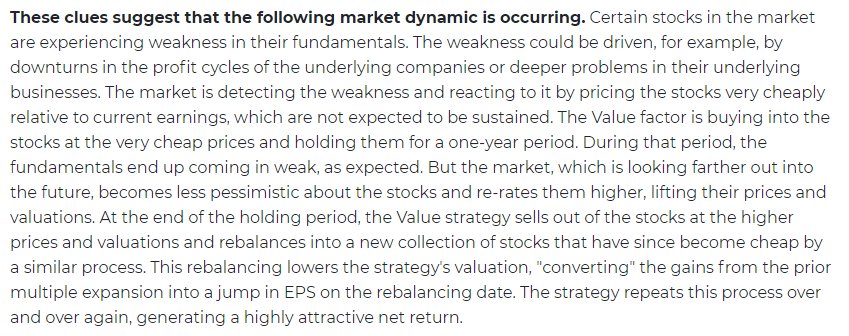 1/ Alpha in the value factor is the result of a convergent process, where alpha itself is the market re-setting multiples upwards in anticipation of real future fundamental recovery. Momentum is a divergent process. Both explained here: