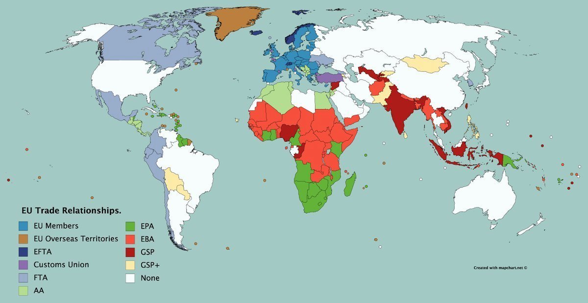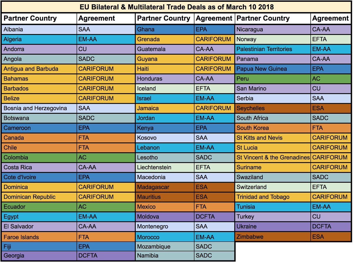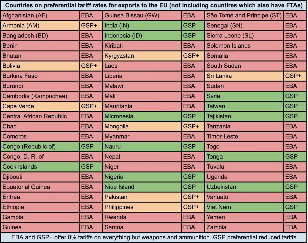 Here is a list of those preferences I mentioned earlier. The countries in red and yellow benefit from total the elimination of tariffs on all goods imported into the EU.