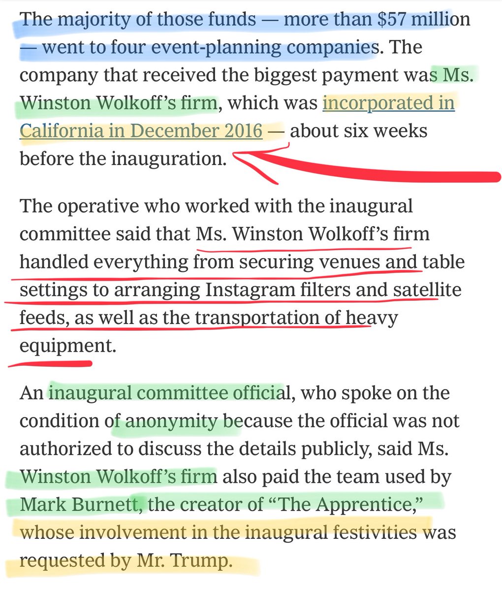 Interesting, I don’t remember any articles on this event company and the payments from the Inauguration- because Stephanie Winston Wolkoff‘s payment for $26M seemed to have been more than enough for how small and low key the Inauguration was...