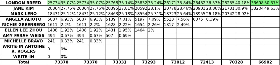 Many following SF politics saw the initial results for Mayor last night, when only the early vote-by-mail ballots had been counted. Breed was winning.