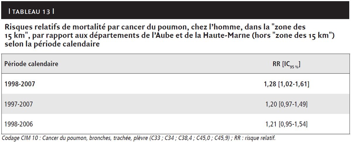 au tabac (...). [Elle] n'a pas mis en évidence d'excès de mortalité, pour les cancers associés au tabac, chez les hommes dans la "zone des 15km".