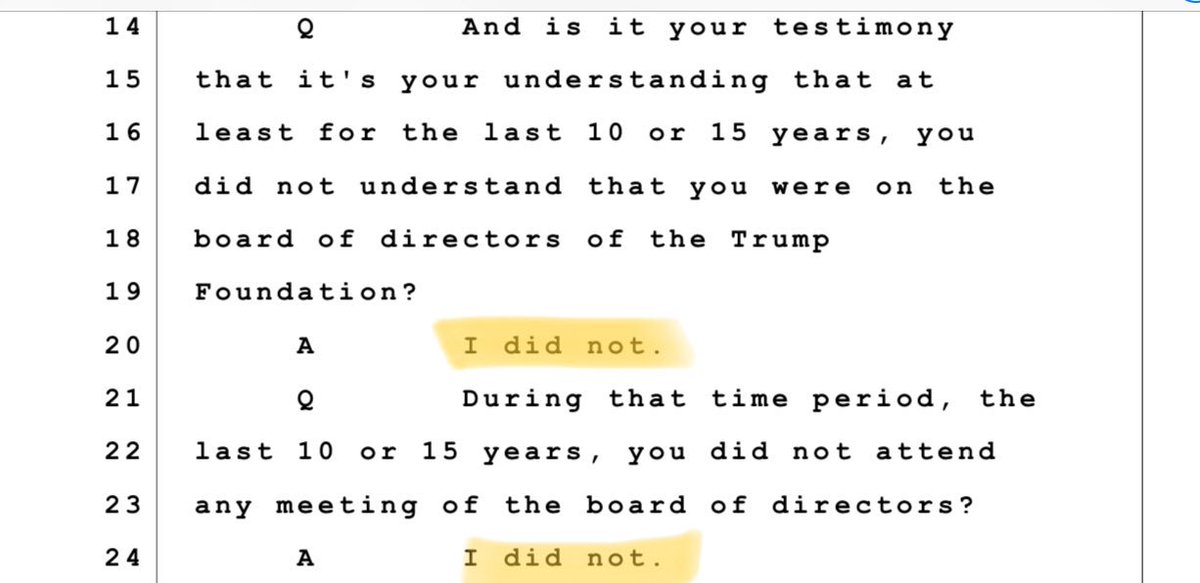 Q2: did anyone treat @realdonaldtrump’s Fdn like a real charity: an independent entity w/ its own officers, own $ & mission to serve?