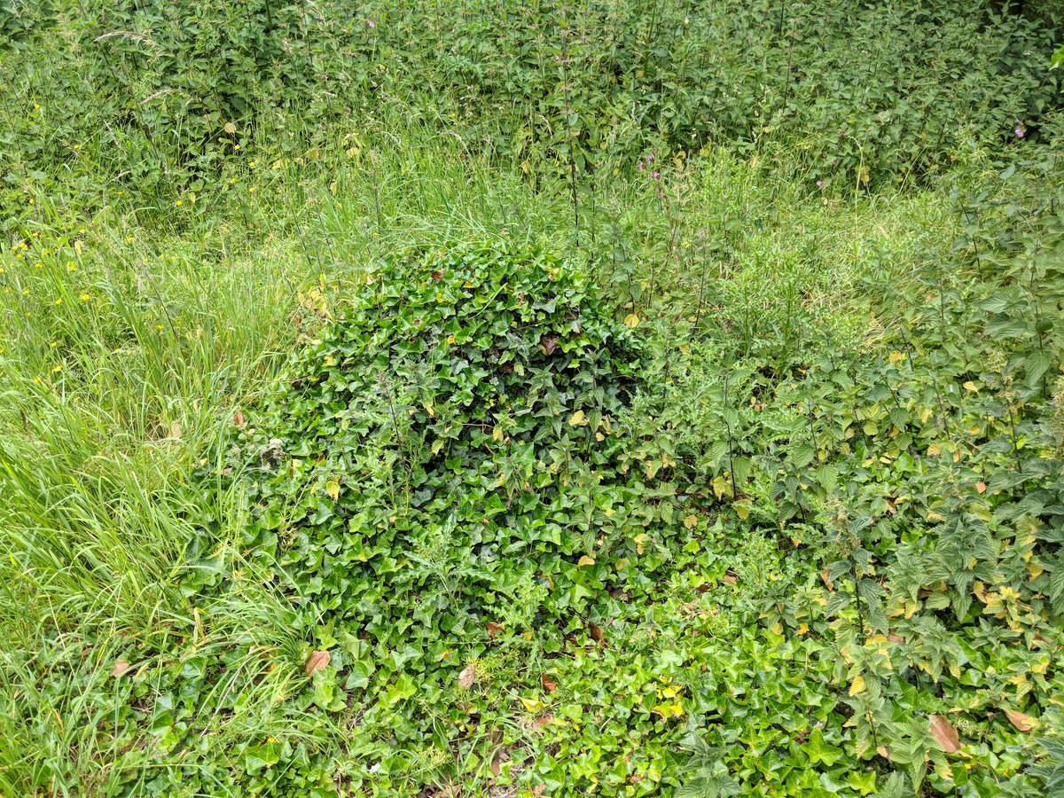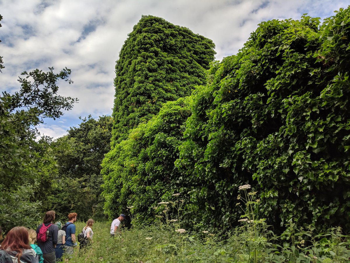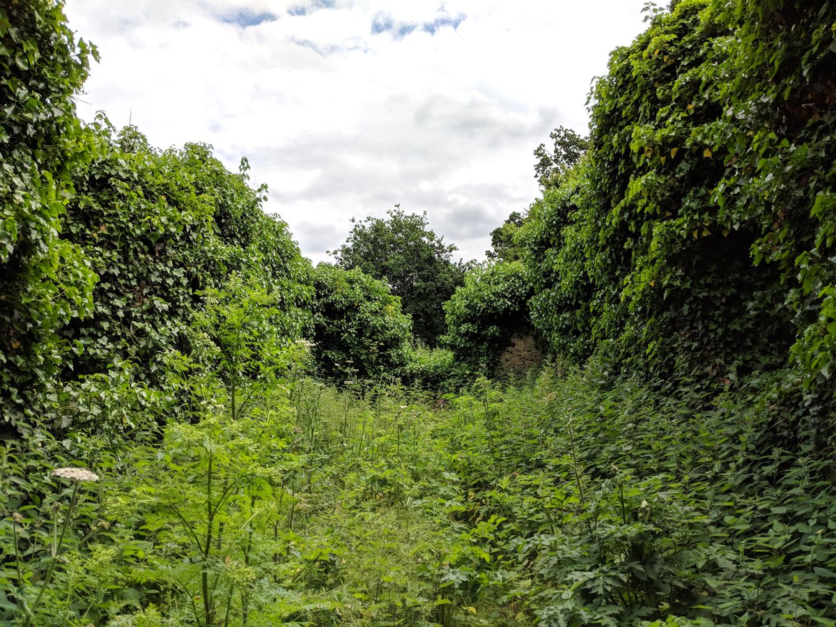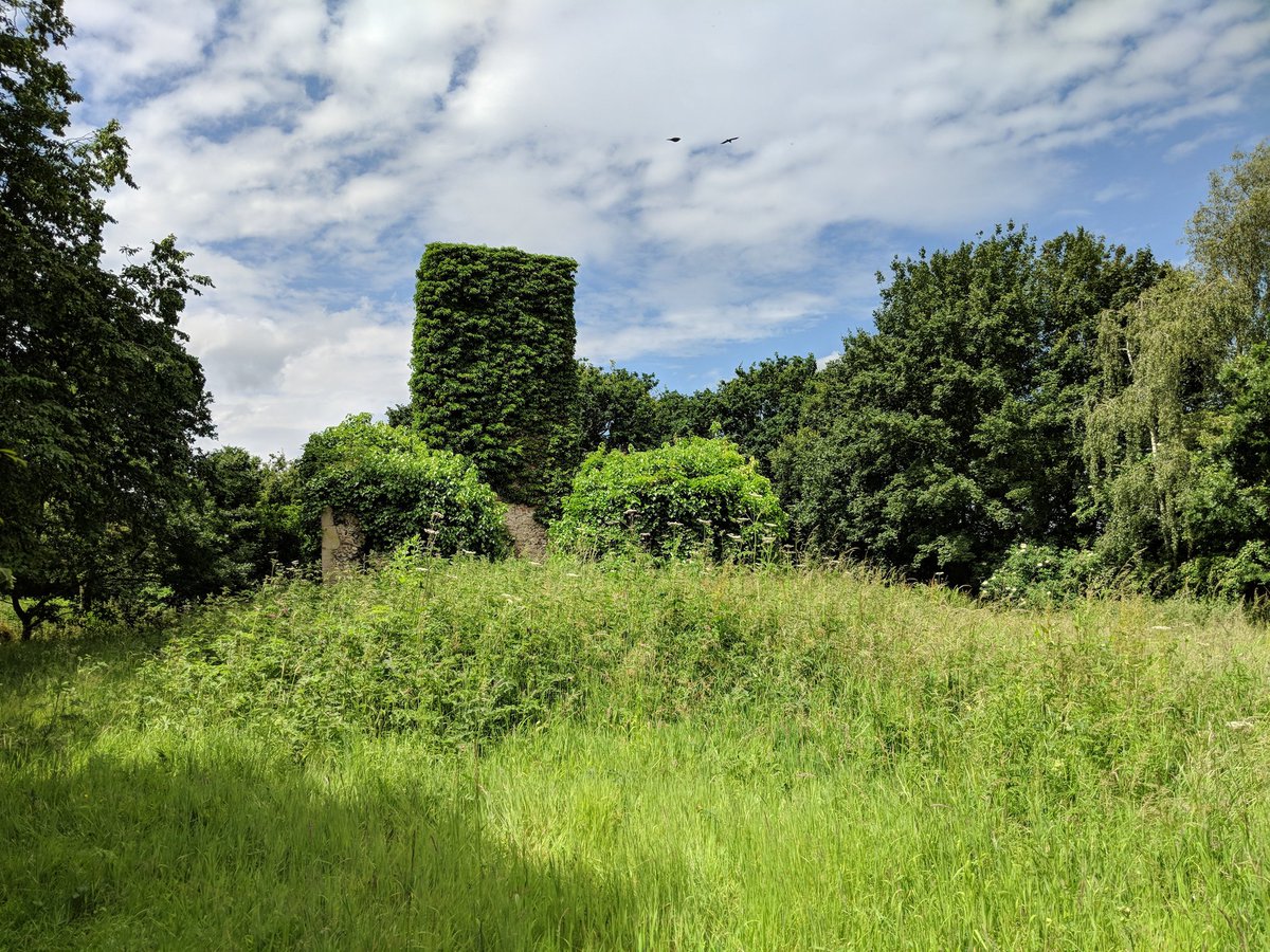 Lumps of masonry fallen into the grass have turned into little hillocks of ivy.
