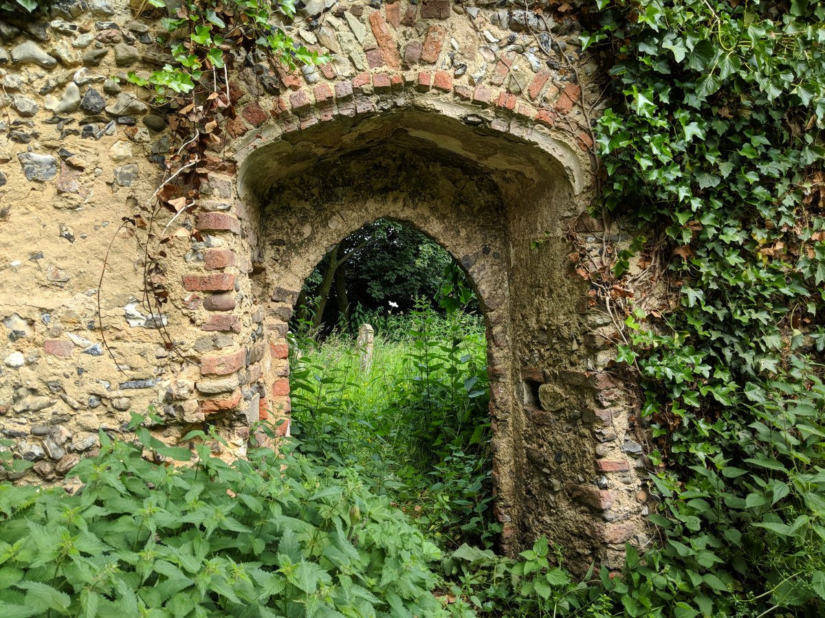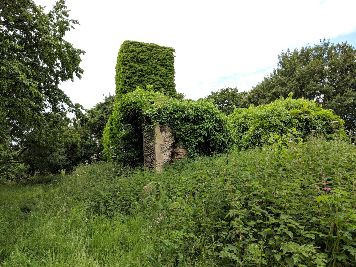 The walls are now overgrown with ivy and elder, and birds roost high in the tower.