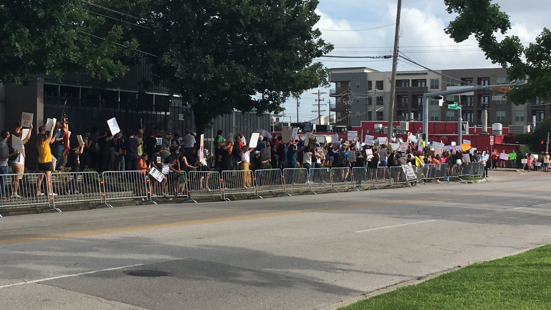 Yesterday activists surrounded the “tender age shelter” being remodeled in Houston.