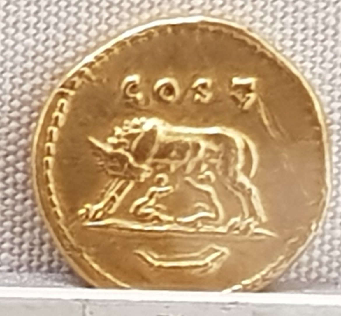 Et quelques monnaies du Haut empire : lauriers d'Auguste, funérailles d'Agrippine l'ancienne, victoire de Trajan et louve aux jumeaux de...