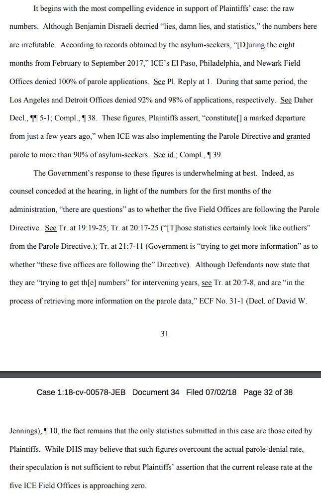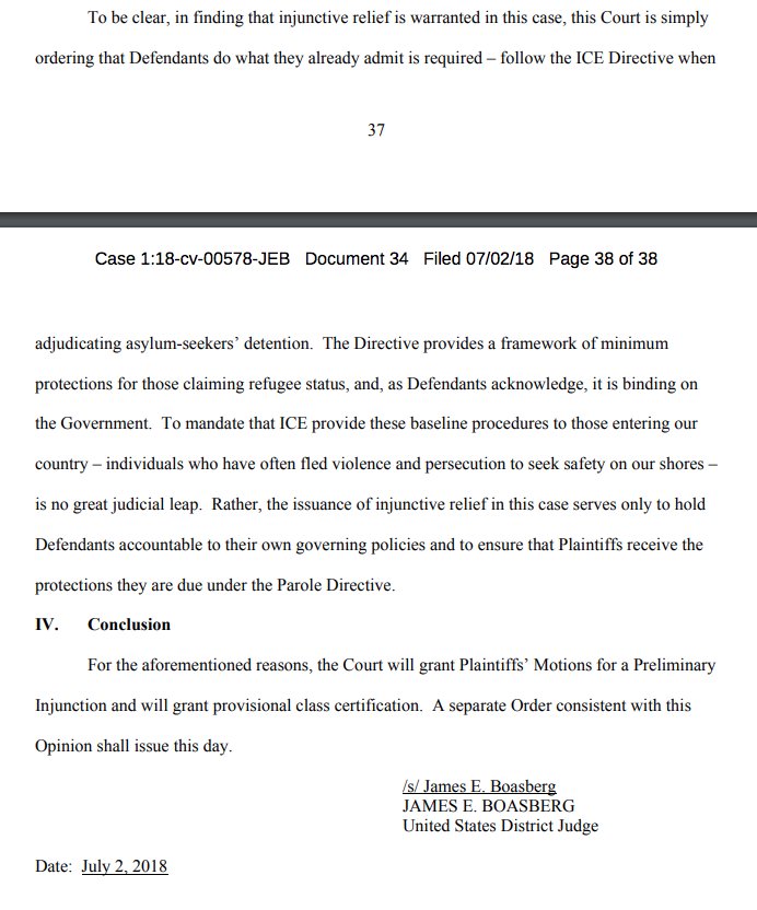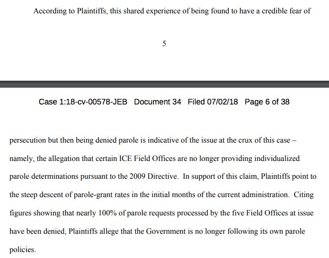 DC federal judge entered a preliminary injunction today that essentially orders ICE to follow its own policies re: parole process for asylum-seekers who make it through the "credible fear" stage assets.documentcloud.org/documents/4570…