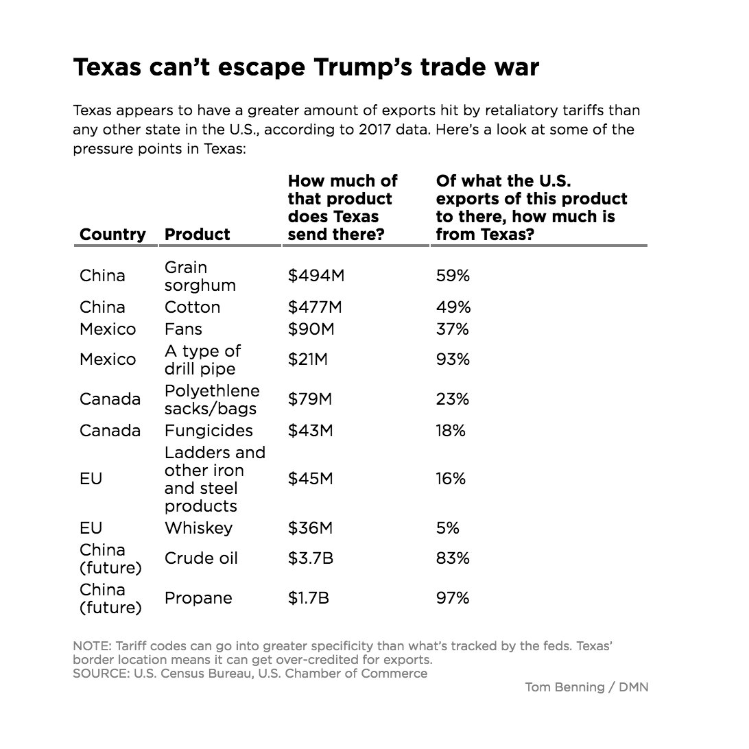 1/ As Republican and Democratic politicians alike warn about economic pain, Texas is now all-in on the president's trade war. Whether it likes it or not. buff.ly/2KQHCpw