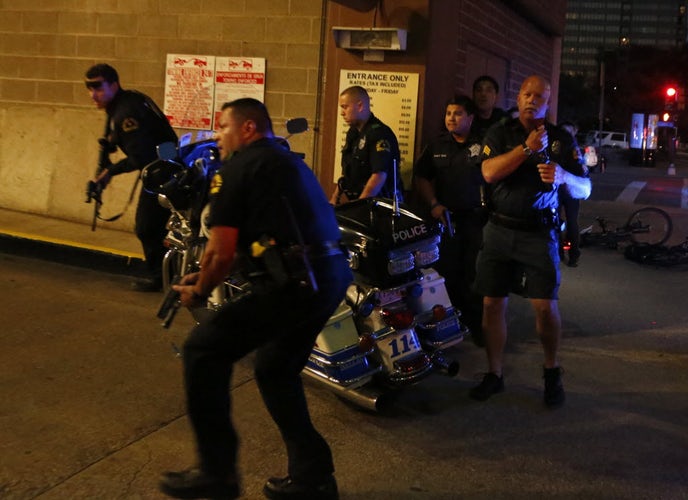 5/ As the gunfire continued, 5 officers hoisted Taylor into a police car. She was raced to Baylor University Medical Center for emergency trauma surgery. buff.ly/2lVU3pc