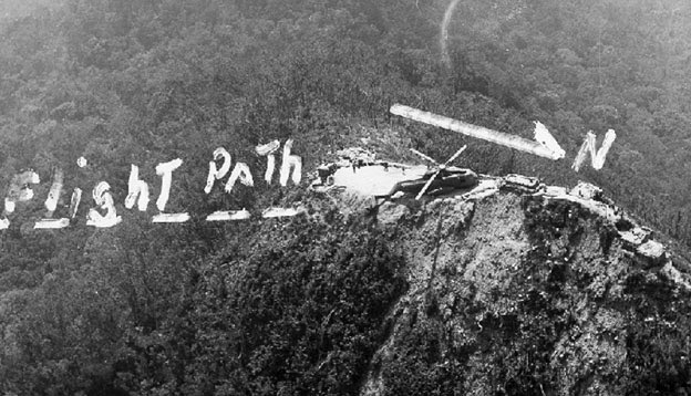 Al aterrizar un golpe de viento empuja al CH-53 contra el bunker y lo roza con las aspas. El helicoptero gira y pierde el control momentaneamente.