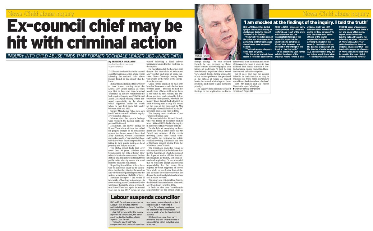 INQUIRY INTO CHILD ABUSE FINDS THAT FORMER ROCHDALE LEADER LIED UNDER OATH