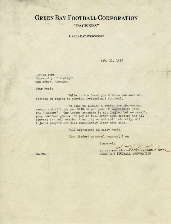 Ford was offered NFL contracts by numerous teams; chose to attend Yale Law School instead. World War II naval officer, fought in the Pacific. Married a fashion model, Elizabeth (Betty) Warren; elected to 13 terms in Congress. Also: only Eagle Scout to become POTUS