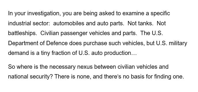 We're now at 20 speakers at Trump's hearing on possible "national security" auto tariffs. Just one, the UAW union, has expressed any kind of support. Otherwise unanimous: no basis at all for the idea that car imports are a national security issue, tariffs would hurt the US.