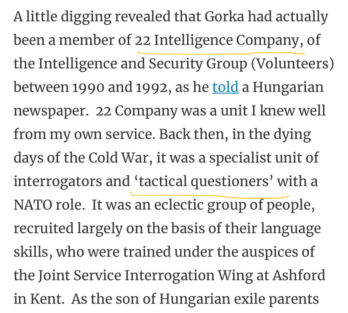 Gorka is more than meets the eye. He was [1 of 22] of “tactical questioners”