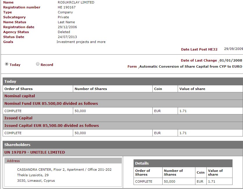 Psy Group was previously controlled by a Swiss lawyer and financial expert, Judith Hamburger. She has worked for exactly 2 Cyprus companies in her life. Today, I found out that both of those companies are owned by the largest producer of tile in Russia.