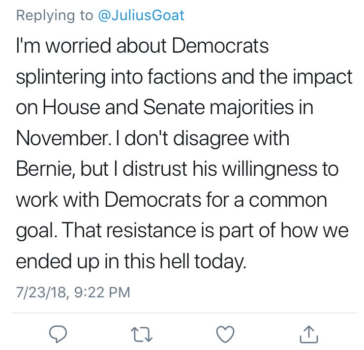 I didn’t mention Bernie Sanders. I didn’t say anything suggesting the Democratic Party shouldn’t cohere to support its candidates. Yet this.