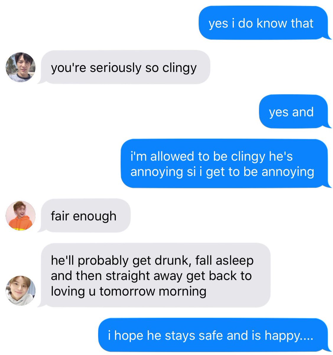 ㅡ goes to university with him, can't go two words without mentioning his boyfriends name. creative writing major