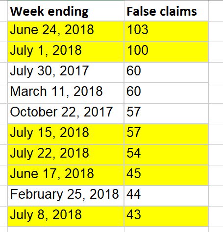 Trump's last six weeks are ALL in his ten most dishonest weeks as president.