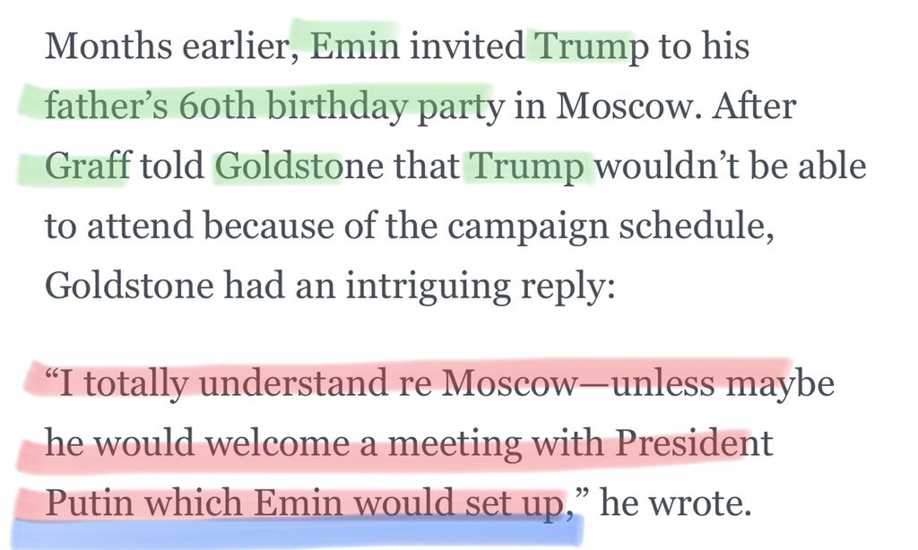 🔥Months before the Magnitsky meeting, Rob Goldstone wrote Trump’s long time secretary, Rhona Graff, and offered a meeting w Putin in Moscow -telling Rhona that Emin Agalarov would set it up‼️