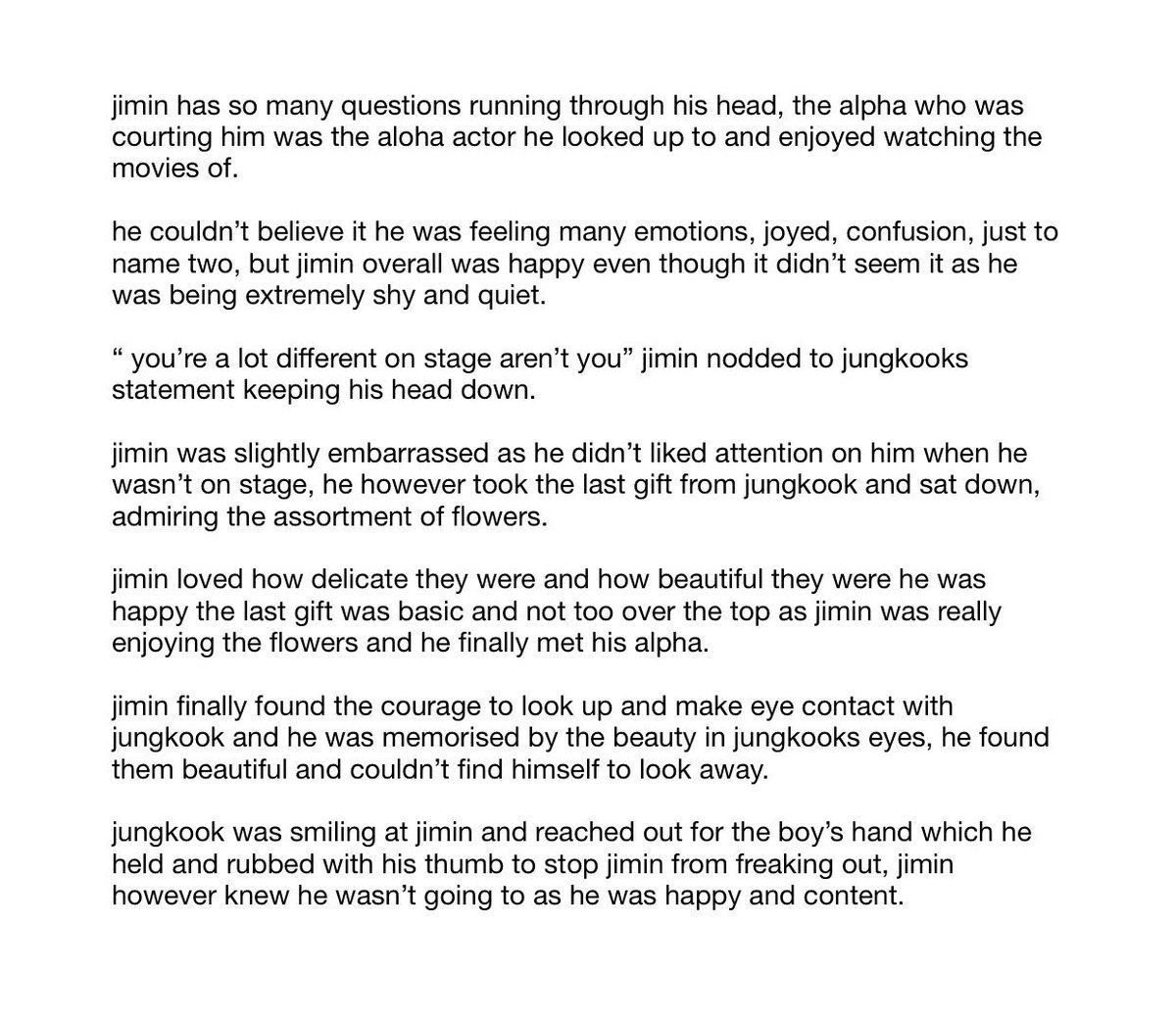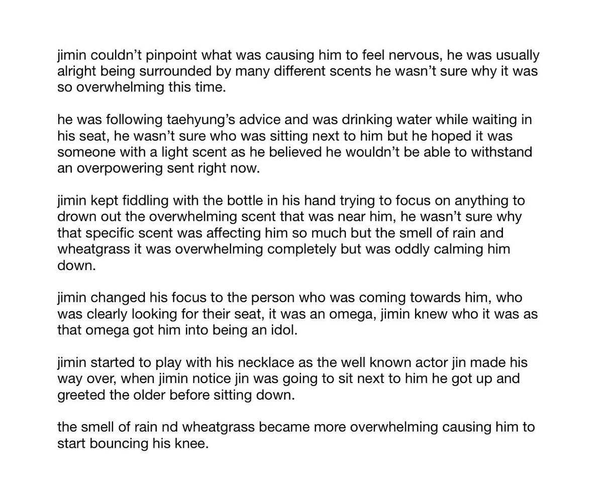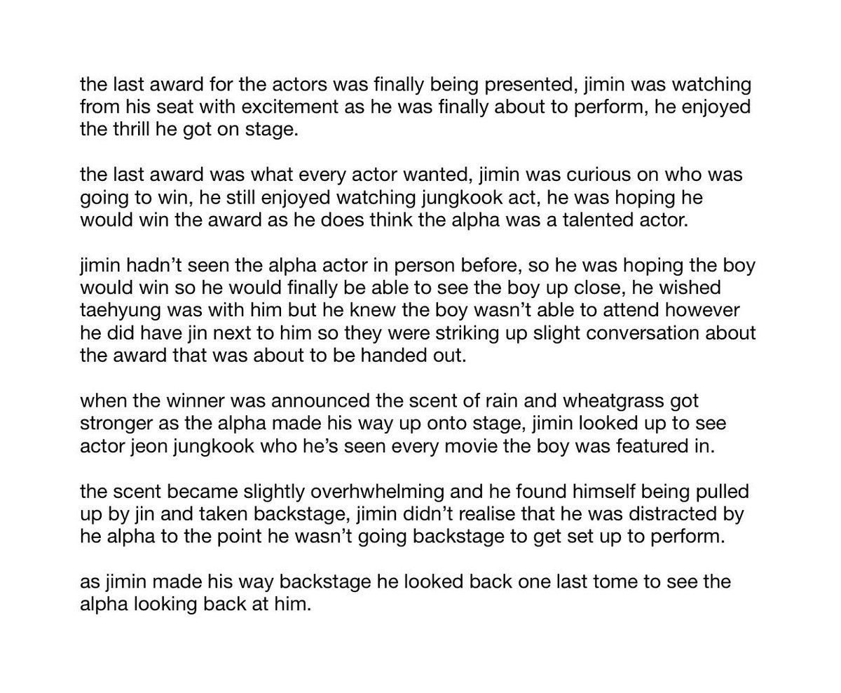 omega park jimin loved the idol life, when he starts getting courted he shows the gifts off in public, hoping they’re from a certain actor, alpha jeon jungkook